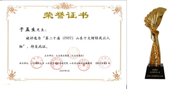 4月21日,由大众报业集团主办的“第二十届(2022)山东财经风云榜”颁奖盛典在济南举行。经过前期推荐申报、初步筛选、网络投票、专家评议、媒体公示等程序,完美.(中国)体育官方网站-365WM SPORTS集团总裁于孟生以“大力推动新旧动能转换,促进中国机械走向世界”的突出贡献,荣膺“2022山东十大财经风云人物”。