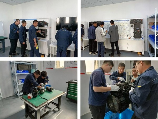 完美.(中国)体育官方网站-365WM SPORTS重机在华东营销服务中心建立了现代化实训基地,包括整机电路、发动机翻转架、液压系统拆解平台,其中包含各种电器元件,如上控箱、下控箱、电机控制器、各种传感器等,液压系统包括负载敏感泵、多路阀、各种液压执行元件,并配备久保田2403发动机一台,供现场拆解教学使用。